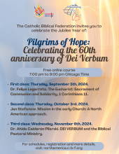 In the year 2025 the Catholic Church will celebrate an Ordinary Jubilee with the theme “Pilgrims of Hope”. On this occasion we celebrate the sixtieth anniversary of the closing of the Second Vatican Council. The Catholic Biblical Federation joins this celebration by offering a series of webinars with the purpose of continuing to build the Kingdom of God through the study of the Word of God.